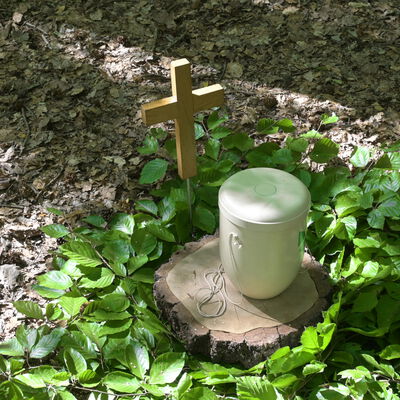 - Wir organisieren die Einäscherung des Sarges im Krematorium Werl, wo die Asche in eine FriedWald®-Urne gefüllt wird.